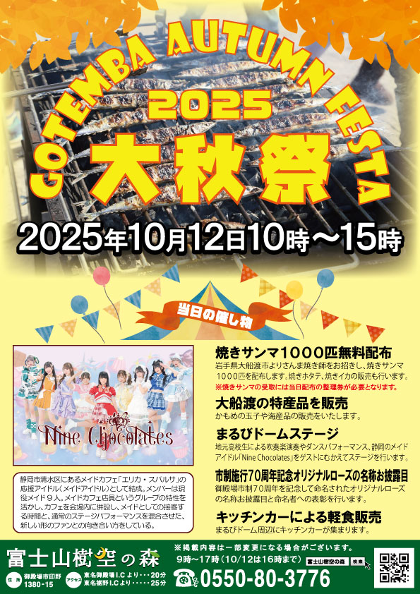 樹空の森の秋の風物詩、サンマを食べながらステージのパフォーマンスで一日楽しみましょう!
